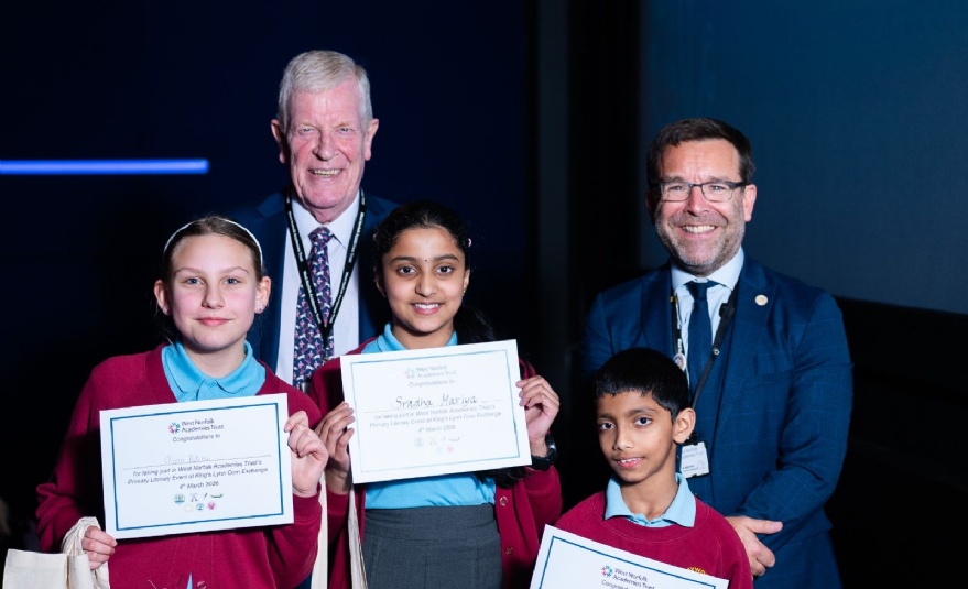 Held at the King’s Lynn Corn Exchange on Wednesday 4 March, the celebration of reading featured teams of Year 5 children from primary schools which included Trust members Clenchwarton, Gaywood, Heacham Junior, Snettisham, Walpole Cross Keys, and West Lynn, along with Terrington St John, Tilney St Lawrence, Walpole Highway, and West Walton from the Windmill Primary Federation.